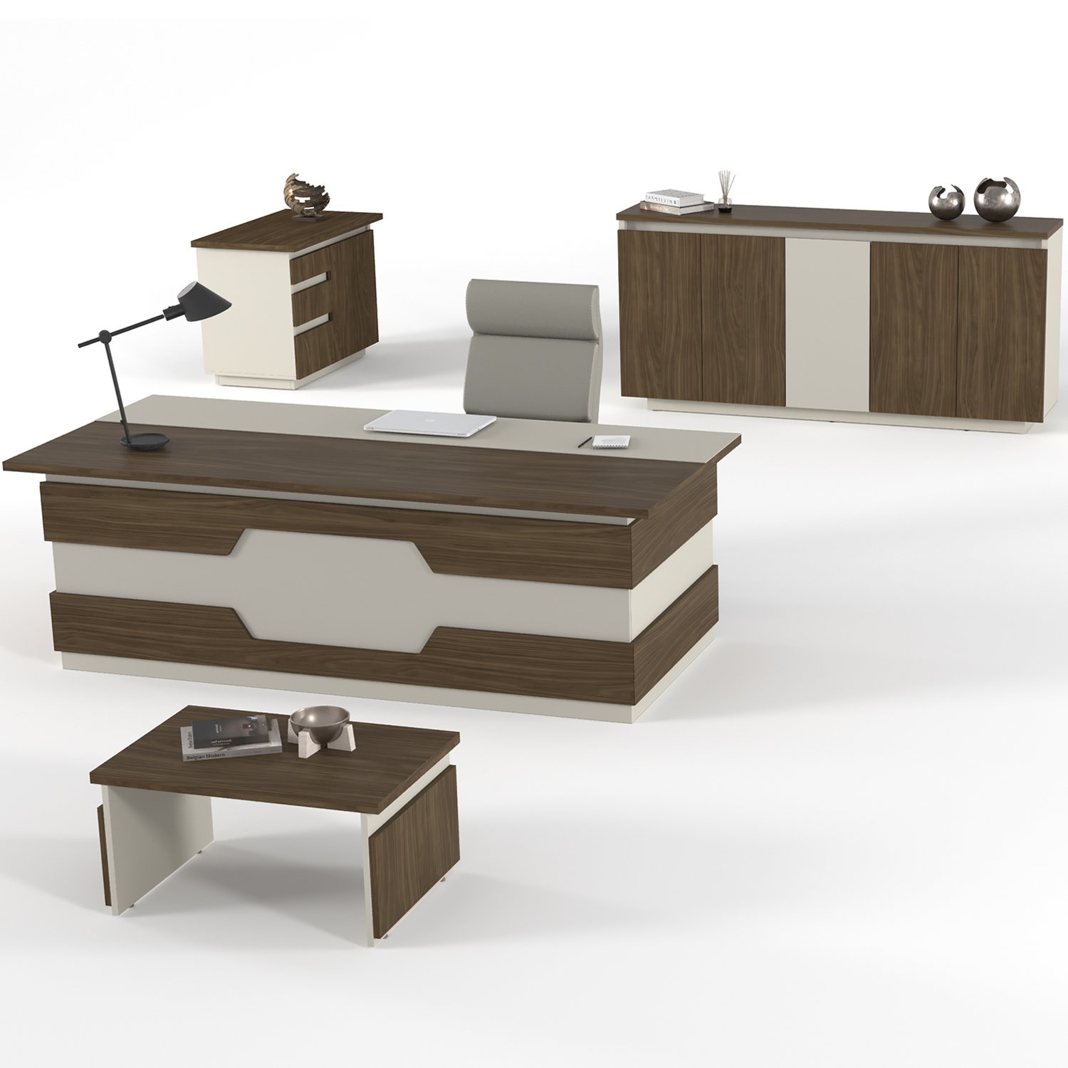 Astana Ofis Masa Takımı 4 Parçadan Oluşmaktadır. 30 mm Tabla Kalınlığında Masa Tablası, 3 mm Mdf Üzeri Deri Kaplamalı Sümen Mevcuttur.Cnc'de Özel Form Verilmiş Perde Çıtaları, 45 Derece Açılı Perde ve Ayaklar, Frenli Menteşe ve Teleskopik Ray, Özel Tasarım Kulpsuz Kapak ve Çekmeceler Kullanılmıştır. Ürünümüzde Renk Seçenekleri Mevcuttur.