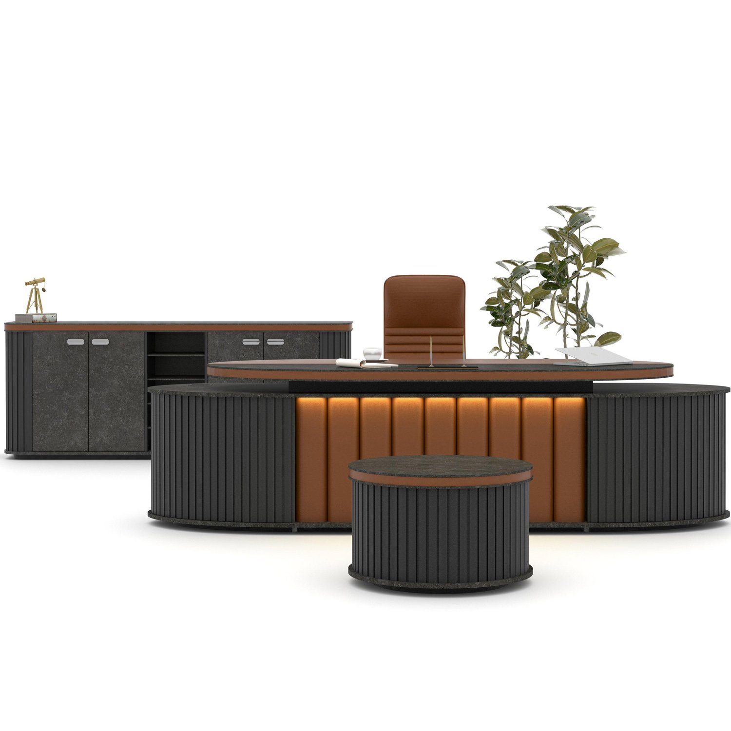 Etna Masa Takımı 3 Parçadan Oluşmaktadır. Etna Masa Tasarımı ve Deri Sümen Kaplamalarıyla Ofisinizde Kaliteyi ve Ağırlığı Sunmaktadır.
